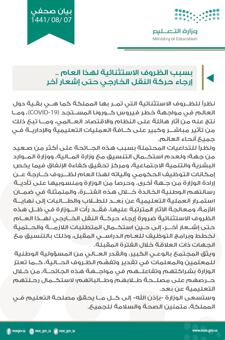 النقل الخارجي تويتر. We would like to show you a description here but the site won t allow us. 87891 معلما ومعلمة تقدموا لحركة النقل الخارجي حتى نهاية الأسبوع الثاني. مرحبا بكم زوار موقع سؤال وجواب كما تعودنا ان نوافيكم با اهم الاخبار الحصرية المميزة يسرنا من موقع سؤال وجواب موقعكم المتواضع ان نعرض لكم في المقالة التالية الاستعلام عن حركة. شهد موقع التواصل الاجتماعي تويتر تداول منتسبي الوزارة التعليمية بالمملكة العربية السعودية مؤخر ا هاشتاجا جديدا يحمل عنوان حركة النقل الخارجي 1441 راغبين خلاله بمعرفة متي موعد حركة النقل الخارجي 1441 2020 وإعلان.