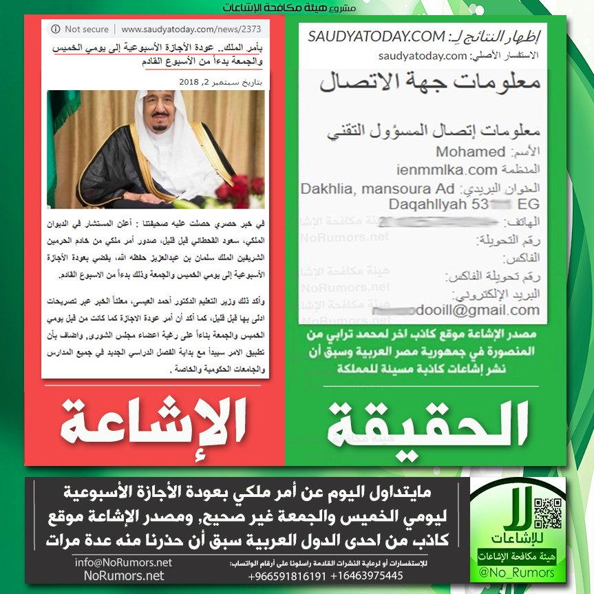 هيئة مكافحة الإشاعات On Twitter مايتداول عن تحديد ثلاثة ايام في الاسبوع لقيادة المرأة بسبب كثرة الحوادث غير صحيح ومصدر الإشاعة موقع مزيف اخر للمصري محمد ترابى أو محمد طرباي والذي لديه